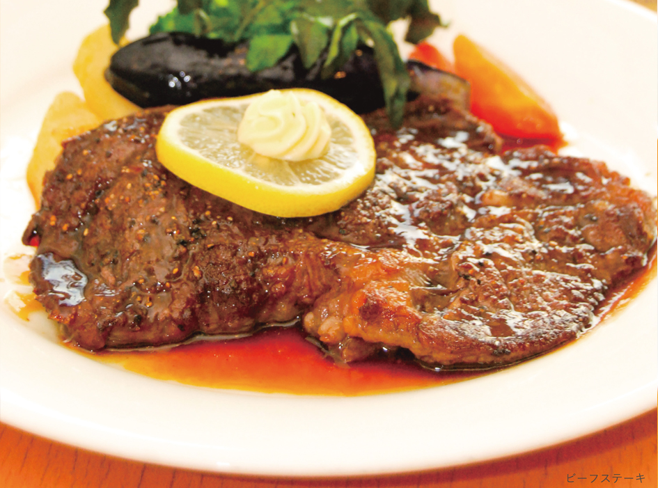 程よいボリュームで楽しめるビーフステーキ。